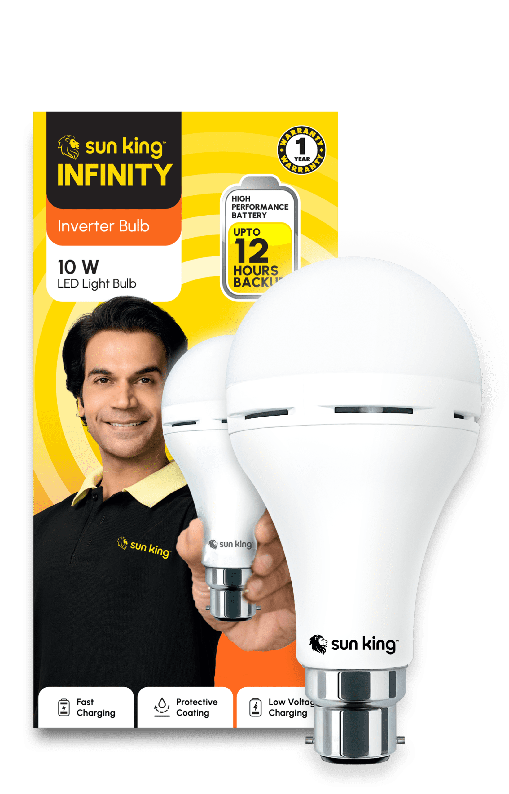The Sun King 10 W Inverter LED Bulb delivers a bright 900 lumens of light while consuming just 10 watts of power. This makes it a highly energy-efficient choice for everyday use, helping you save on electricity bills.